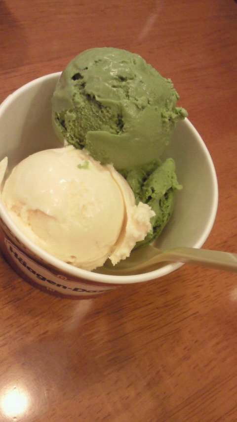 写真は、食べたアイス…ダブル抹茶面白くて撮った(笑)