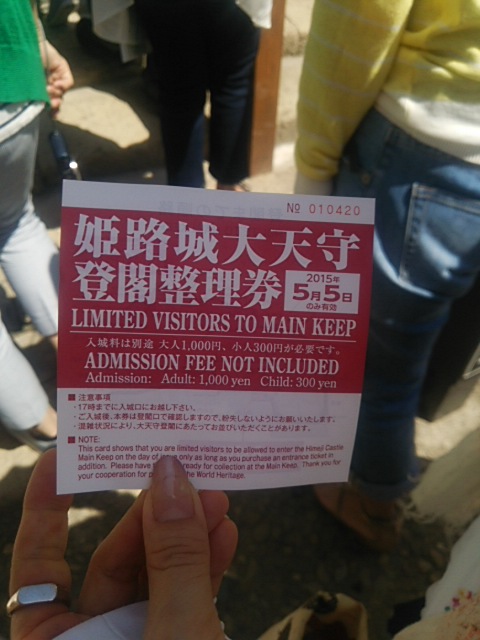 昼前について整理券一万番台、入場券買うまでに一時間以上、城内にはいるまでに一時間以上(二時間くらいだったような……)、中に入って天守に行くまで一時間くらい?、そっから景色見たの15分あったかなかったか……