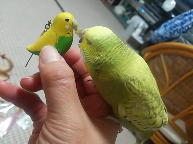 今回はコザクラちゃんでしたが、初めて月やこーひーさんへ行ったときに一目惚れして購入した青セキセイちゃん……