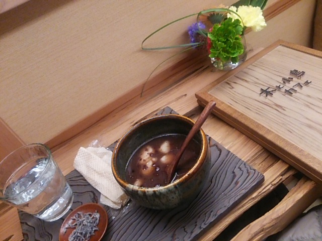 道すがら、日が落ちてきて寒さがすごかったので、お善哉頂きました。