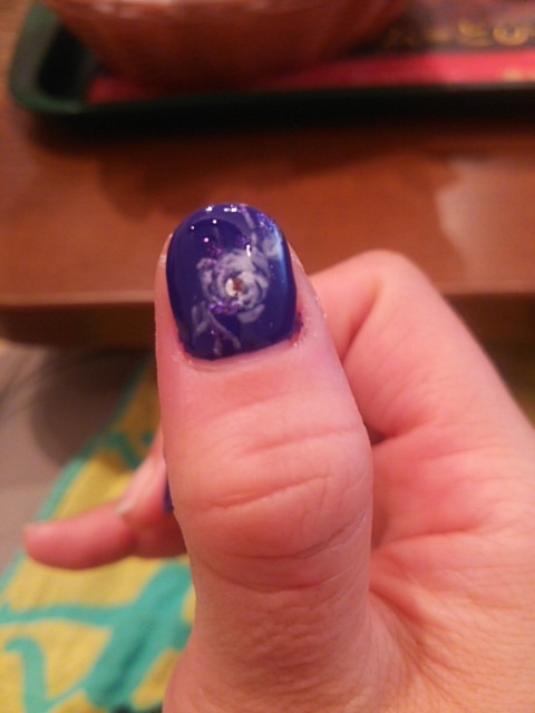 来月の風水のラッキーカラーが、パープルとホワイトだったので、跡部王国の証にあわせて薔薇を描いて貰いました。