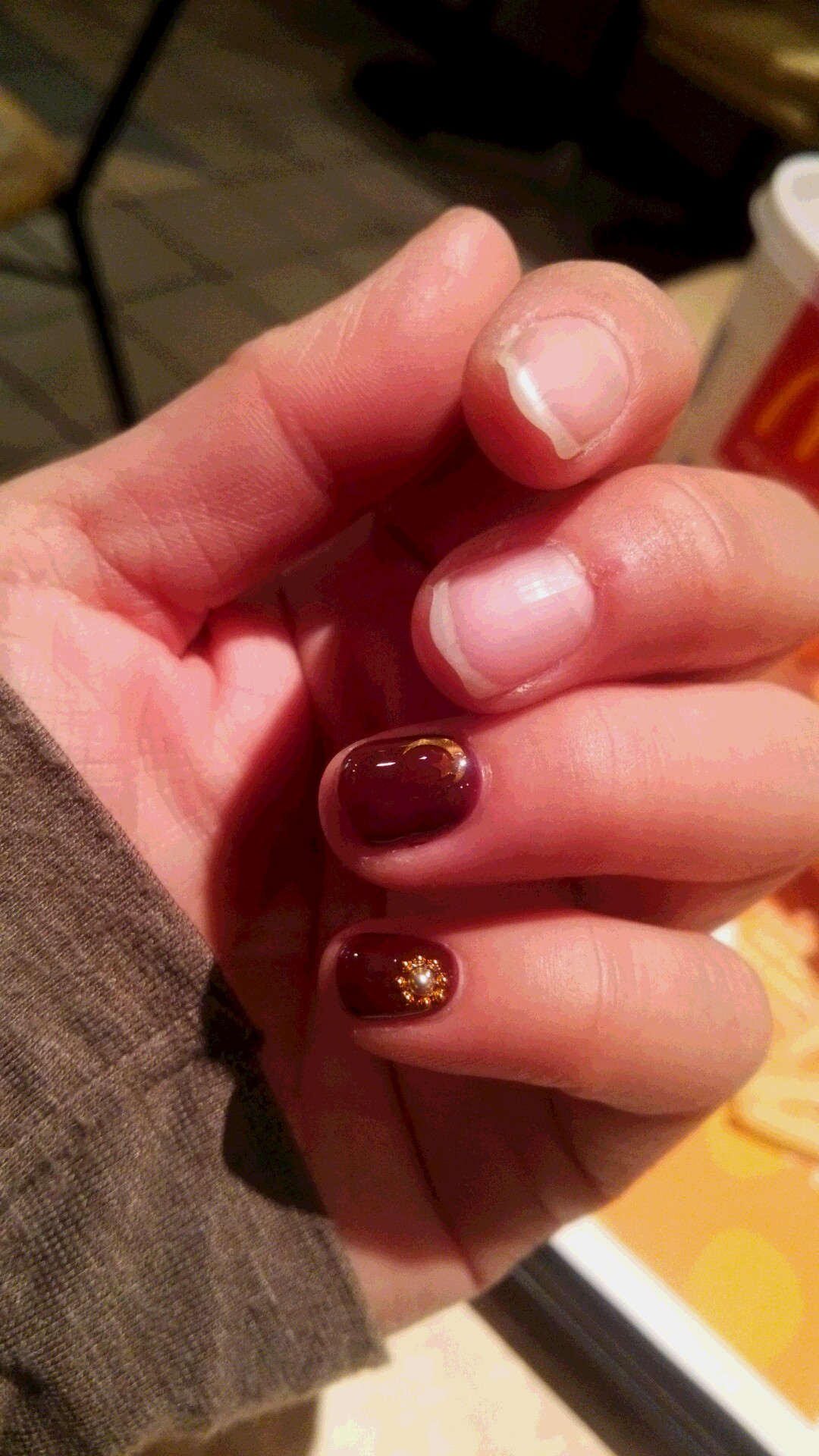 紫系の紅にして貰い、月と花のデコを施して頂きました。