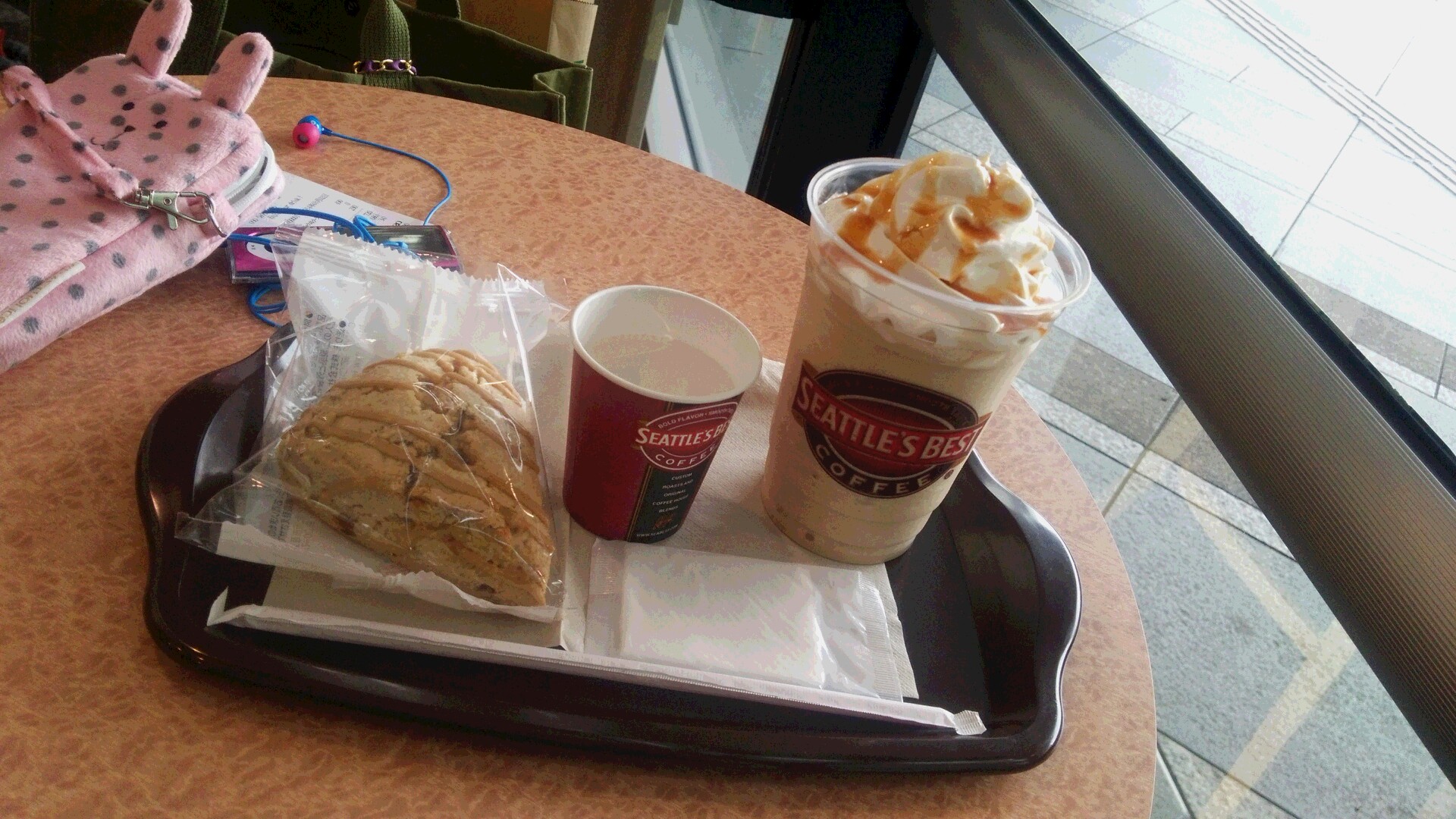 アビステでヒヨコと卵のイヤホンジャック(予算かなりオーバー(-""-;))購入して、ハンズで表紙の用紙買って…昼食べながら悩み悩みしていた場所へ…←今、ここ(笑)