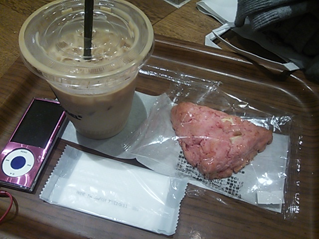 今日は、イチゴのスコーンとアイスラテ。