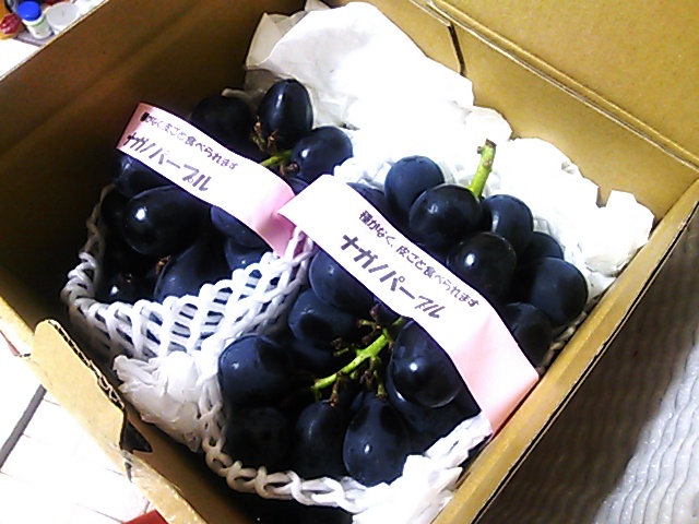 私、葡萄がどちらかというと苦手(種と酸っぱさ)なんですが、頂いたのはすごく甘くて、吃驚するくらいホンとに甘くて、しかも種無し、皮まで丸ごと頂ける…ものでした。