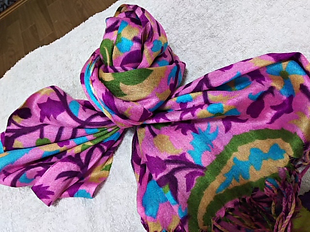 このストールの白をおばさんへ、この色は私に(笑)