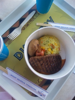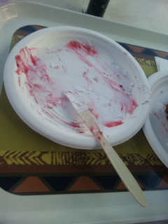 下は、腹が減ったと…入ったジュラシックパークのレストランで食べたランチとケーキと…残骸(笑)